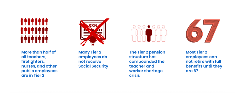 Springfield politicians created a “Tier 2” of lower pension benefits in an attempt to fix the state’s financial problems by cutting benefits for public workers like teachers, fire fighters, nurses and many more.